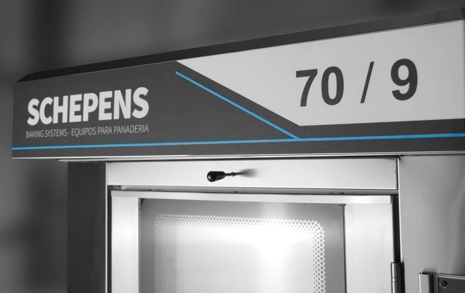 Horno rotativo industrial de 9 bandejas 70x45 cm y 45 kg/hora de producción. Gas natural, GLP o eléctrico. Cámara fermentadora opcional. Fabricado en Argentina.